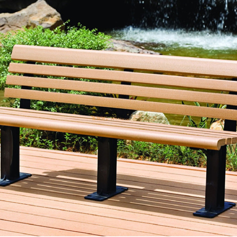 Outdoor-Gartenbank – Park- und Freizeitstuhl kombiniert einen Sitz und eine Rückenlehne aus Holz-Kunststoff-Verbundwerkstoff (WPC) mit einem Rahmen aus Aluminiumlegierung. Der Stuhl weist einen natürlichen Holzmaserungston (Braun, Kaffee usw.) auf, während der Rahmen aus schwarzem oder dunkelgrauem Metall besteht. Wie auf den Bildern zu sehen ist, ist es in verschiedenen Stilen erhältlich, unter anderem mit oder ohne Rückenlehne, mit oder ohne Armlehnen. Der Sitz verfügt über ein gestreiftes Holzmaserungsdesign, wodurch ein sauberes, stabiles Design entsteht, das für den langfristigen Einsatz im Freien geeignet ist.